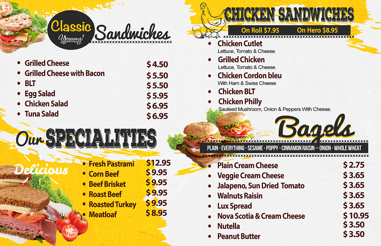 The perfect way to start the day with freshly hand-rolled bagels. We have a wide variety of options omelettes, pancakes, breakfast platters to please every palette, pair with freshly ground French roast coffee to wake you right up!